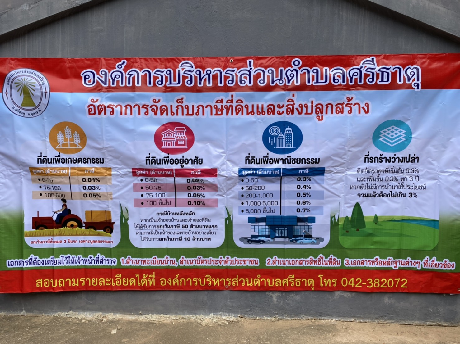 องค์การบริหารส่วนตำบลศรีธาตุ ประชาสัมพันธ์โครงการบริการจัดเก็บภาษีนอกสถานที่ ประจำปี 2563