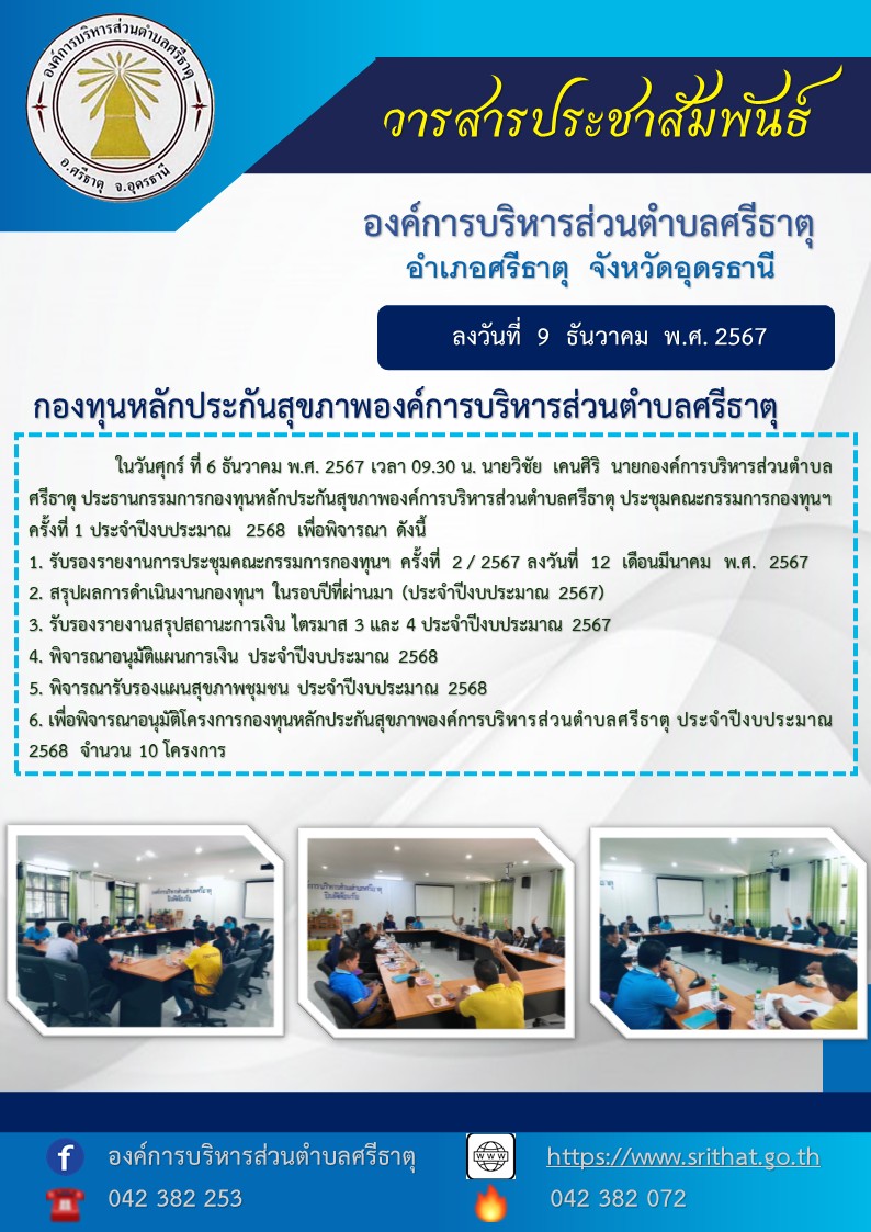 องค์การบริหารส่วนตำบลศรีธาตุ ประชุมร่วมกับ รพ.สต.ศรีสง่าเมือง, ผู้นำชุมชน และคณะกรรมการบริหารระบบหลักประกันสุขภาพระดับท้องถิ่นหรือพื้นที่ ครั้งที่ 1 ประจำปีงบประมาณ พ.ศ. 2568