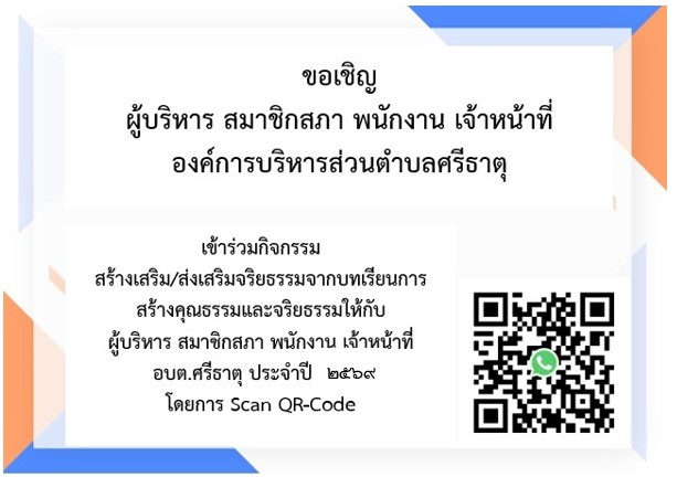 องค์การบริหารส่วนตำบลศรีธาตุ โดย นายสิงหา ศรีชมชื่น ปลัดองค์การบริหารส่วนตำบลศรีธาตุ ร่วมกับพนักงาน เจ้าหน้าที่ บุคลากร องค์การบริหารส่วนตำบลศรีธาตุ จัดโครงการเสริมสร้างคุณธรรมและจริยธรรมในการป้องกันการทุจริตและส่งเสริมจริยธรรมจากบทเรียนการเสริมสร้างคุณธรรมและจริยธรรมให้กับข้าราชการ พนักงาน ลูกจ้าง ประจำปี 2569 ในการประชุมประจำเดือนเมษายน 2569